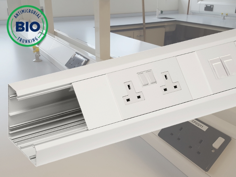 Commonly utilised in schools, hospitals, laboratories, and other environments where high standards of hygiene must be maintained, Bench Trunking a is robust angled trunking ideal for installation with desks or work benches.